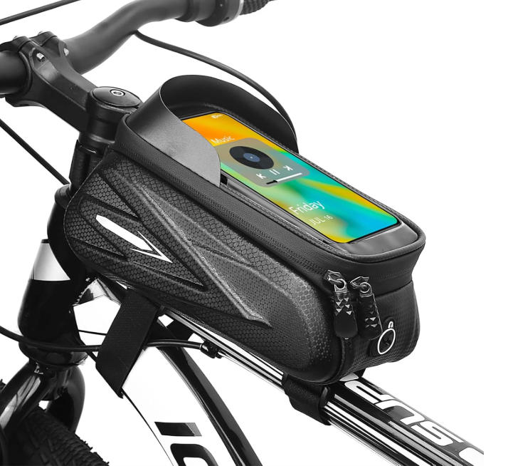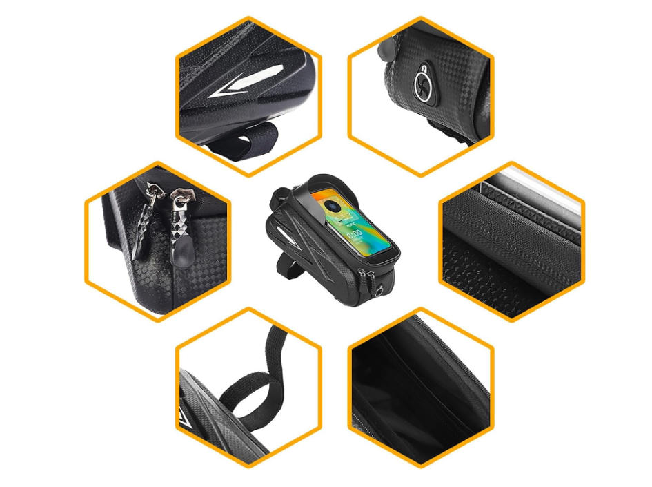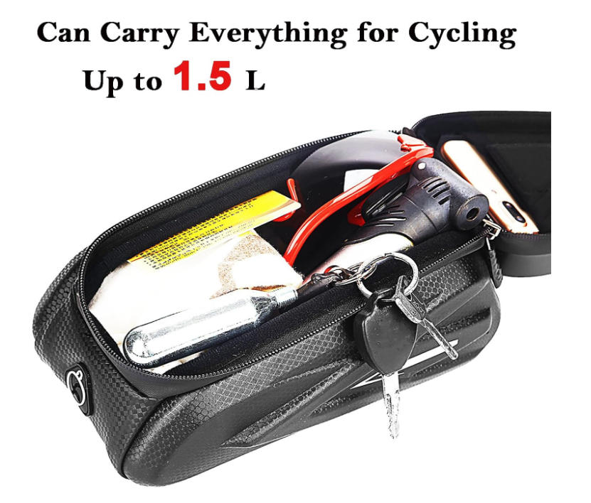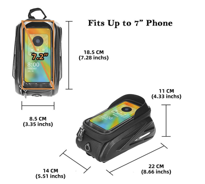 This bicycle frame bag features a large internal compartment to hold essentials like phone, mini pump, tools, keys, and wallet—perfect for long-distance cycling and compatible with smartphones up to 7 inches.Our bike bag frame equipped with a transparent TPU film window, allowing you to easily use GPS, answer calls, or check ride data on your phone without removing it from the bag.